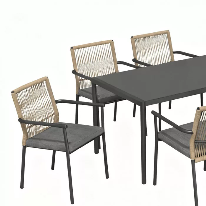Konstrukcja zestawu wykonana jest ze stali malowanej proszkowo. Krzesła pokryte są technorattanem (wikliną), co podnosi estetykę i funkcjonalność mebli. Krzesła wykonane są ze stalowych rurek o średnicy 25 mm, natomiast nogi stołu mają przekrój 35 × 20 mm. Blat stołu wykonany jest z aluminium.