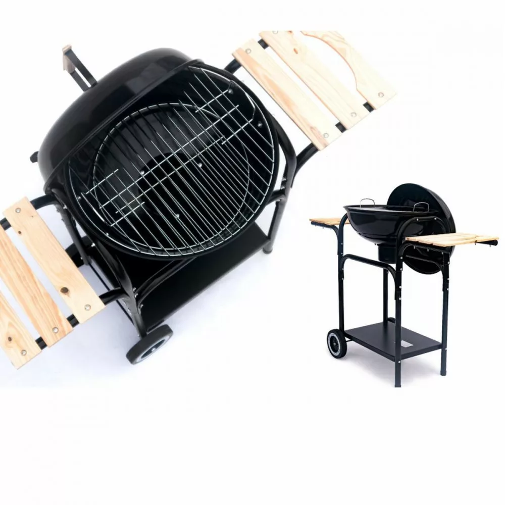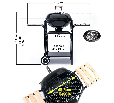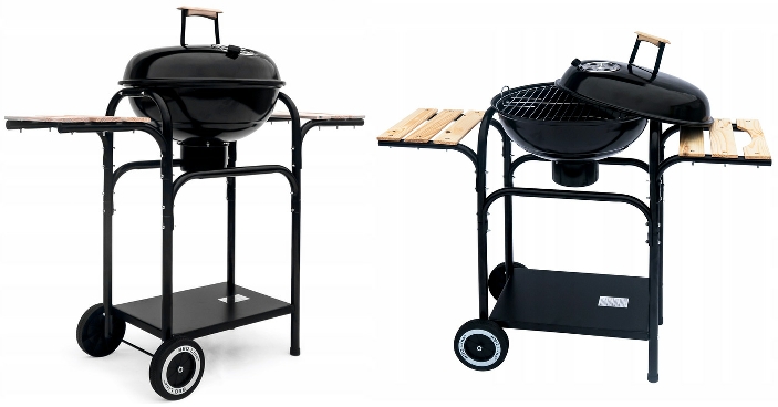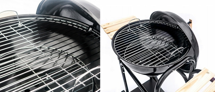 Grill na węgiel drzewnyz pokrywą posiada chromowany ruszt główny i dodatkowy ruszt na węgiel drzewny. Misa i kulista pokrywa grilla wykonane są z emaliowanej stali, co zwiększa ich trwałość i żywotność. Duży grill ogrodowy ma powierzchnię grillowania wystarczającą do doskonałego przygotowania różnych potraw. Duża patelnia grillowa ma pokrywę z zamykanym uchwytem.