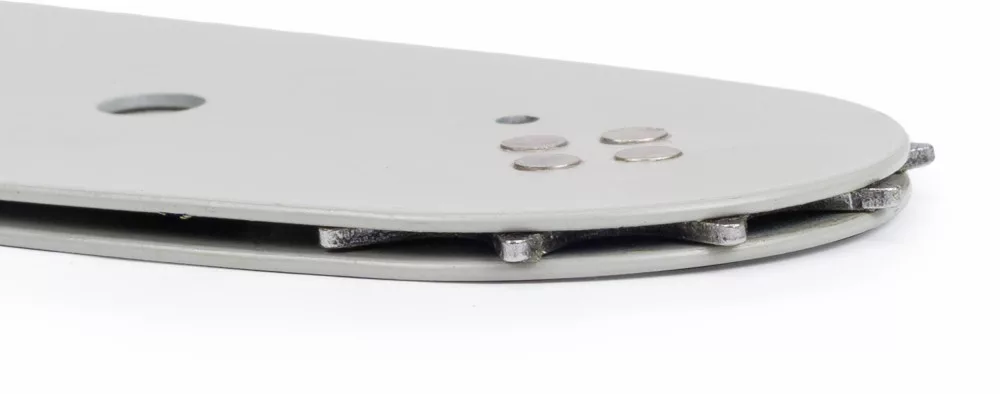 Prowadnica wykonana jest z wytrzymałego materiału odpornego na ścieranie i temperaturę podczas pracy. Zestaw przeznaczony jest do stosowania z pilarkami spalinowymi o podziałce łańcucha 0,325 cala i szerokości prowadnicy 1,5 mm, w tym z pilarkami POWERMAT, HUSQVARNA, Makita, Nac Dolmar i podobnymi.