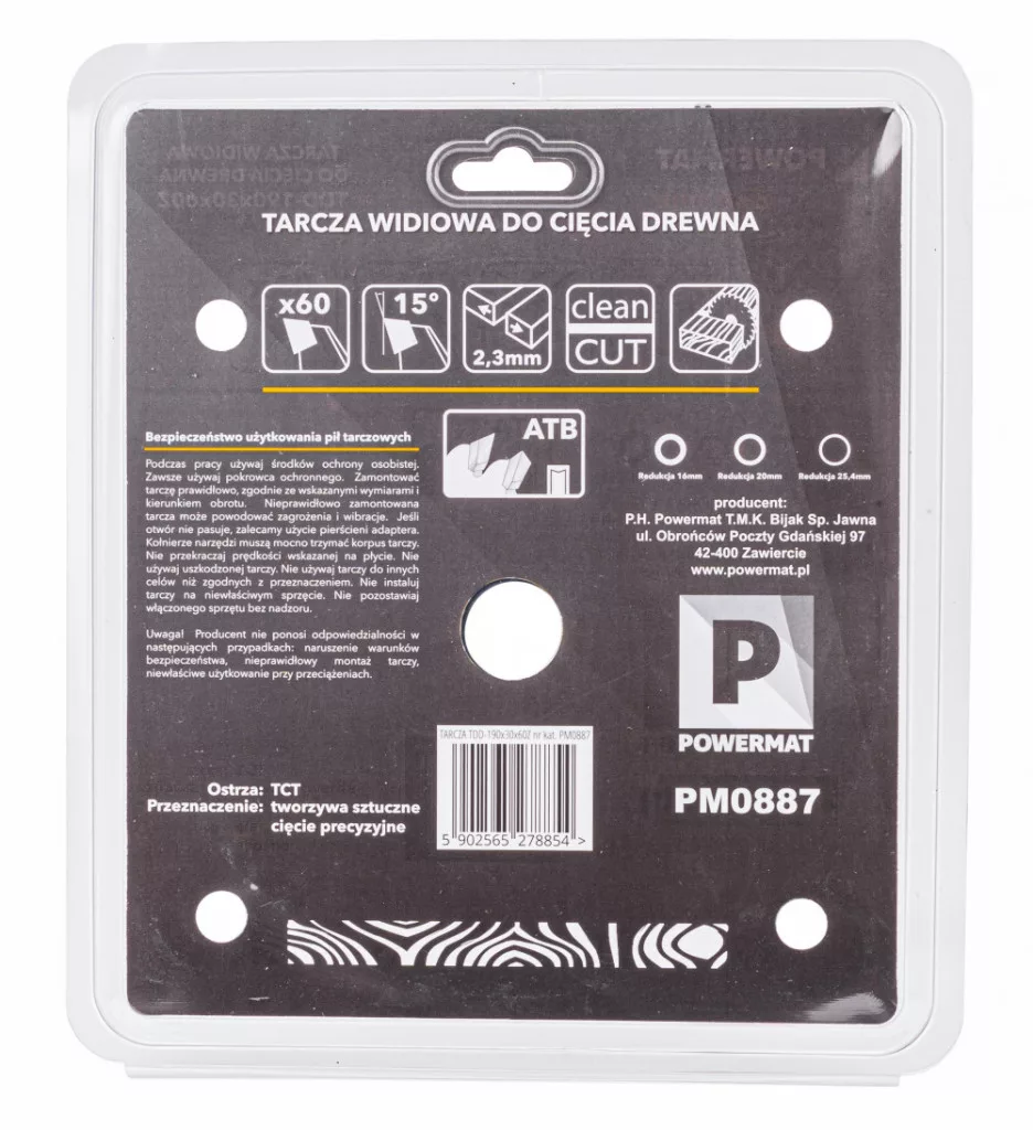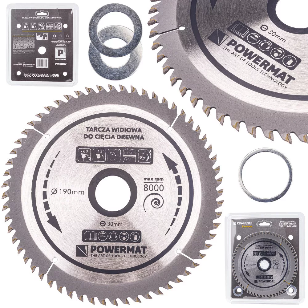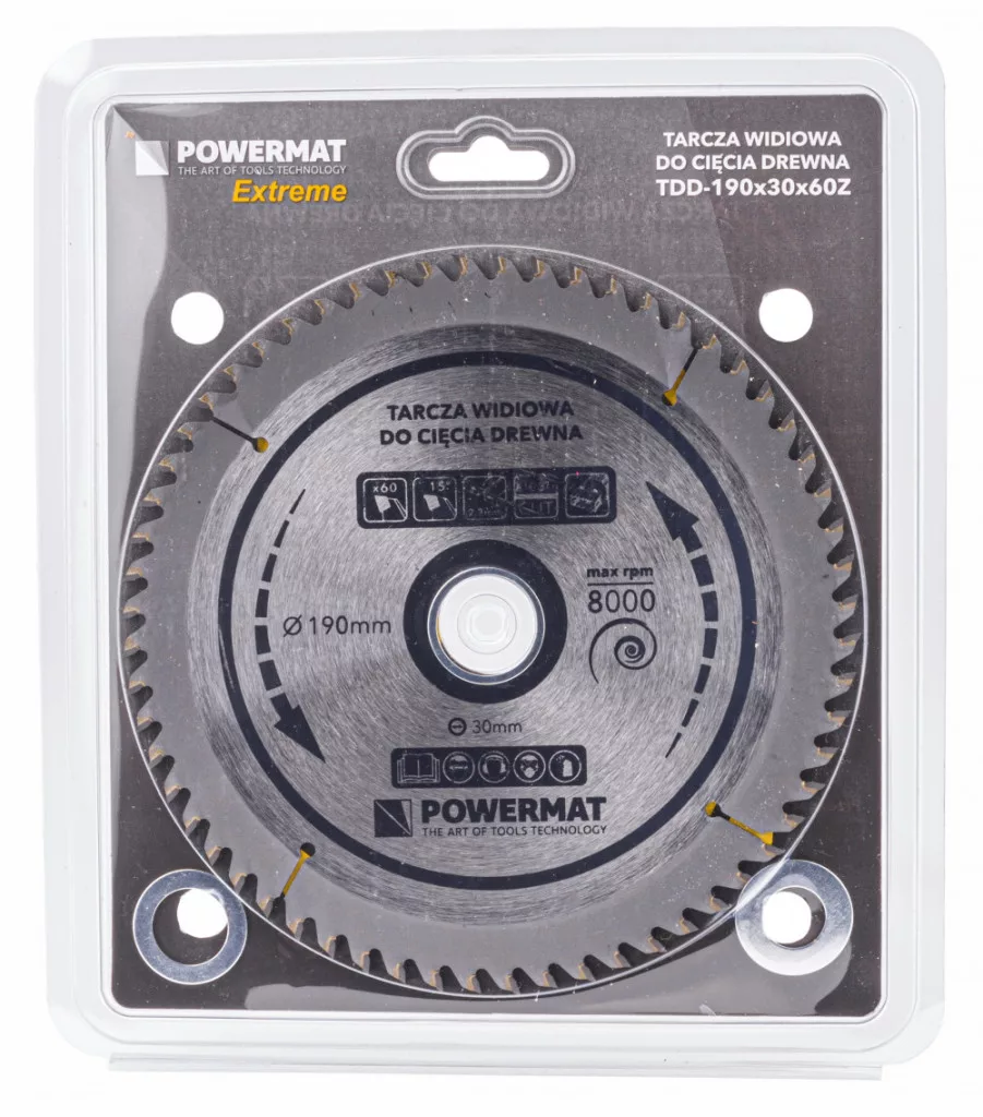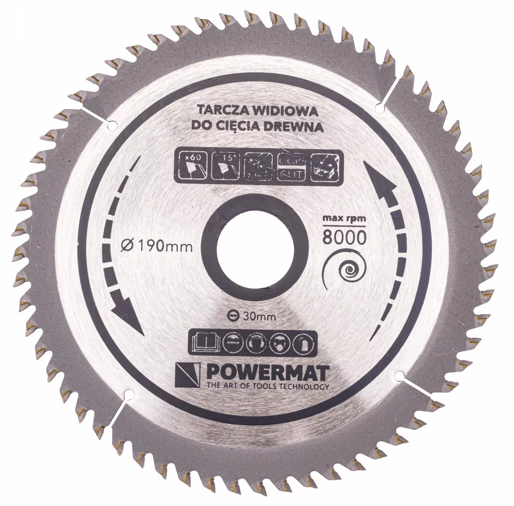 Standard dla stołowych pił tarczowych i ukośnic. Zewnętrzny wymiar tarczy wynosi 190mm , a otwór montażowy 30 mm.