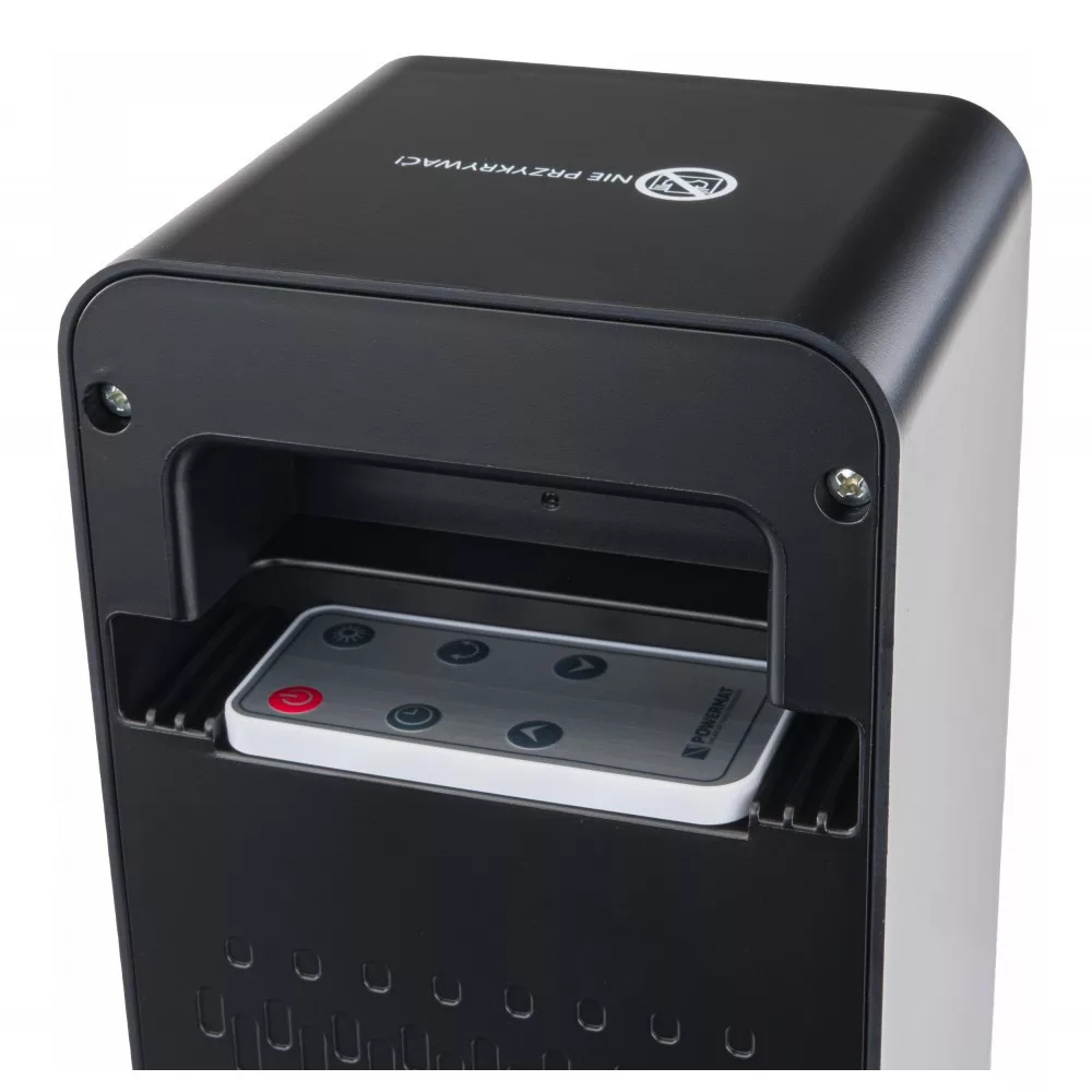 Z tyłu grzejnika znajduje się wgłębienie, w którym można umieścić pilota zdalnego sterowania i użyć rowkowanego uchwytu do przenoszenia urządzenia.