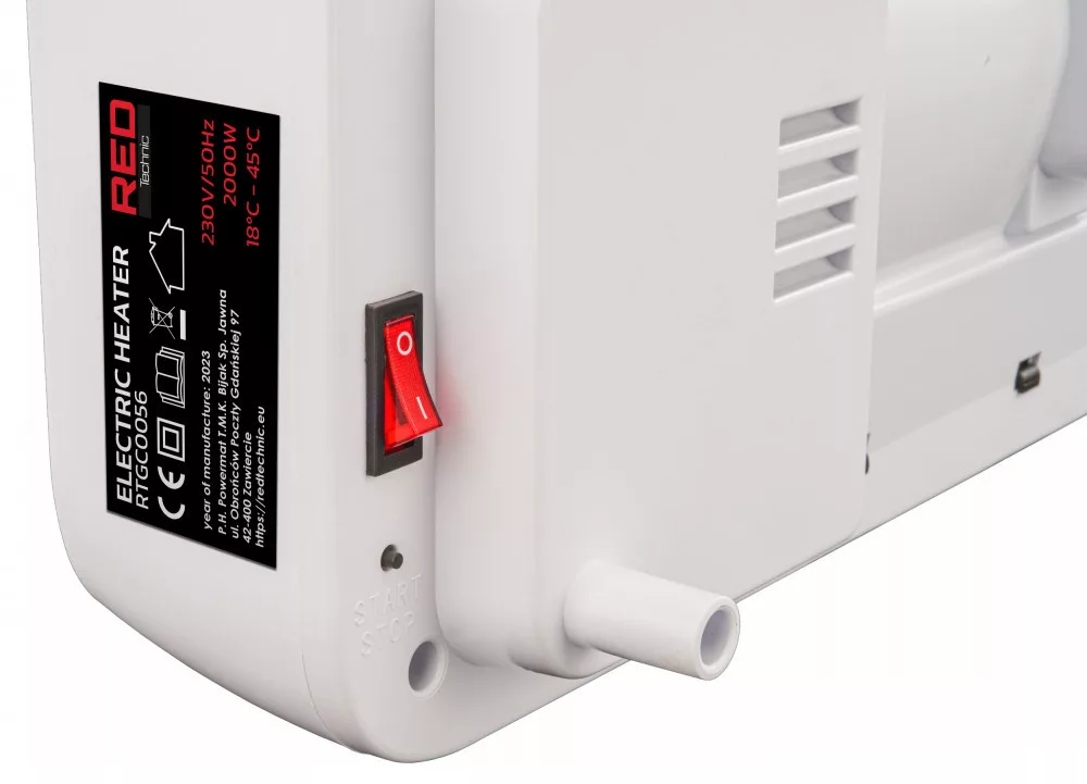 - Moc grzewcza: 0 / 1000 W / 2000 W
