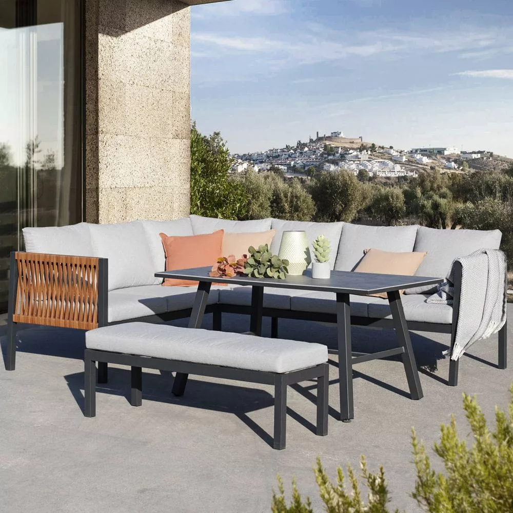 A sarokkanapéval ellátott kerti bútorkészlet a Texas bútorkollekcióból származik, melynek modern country stílusa illeszkedik az aktuális trendekhez. Ez egy divatos és kényelmes bútor, amely lehetővé teszi egy hangulatos pihenő zóna kialakítását. A sarokkanapéval ellátott garnitúra sikeresen kombinálható más Texas családba tartozó termékekkel.