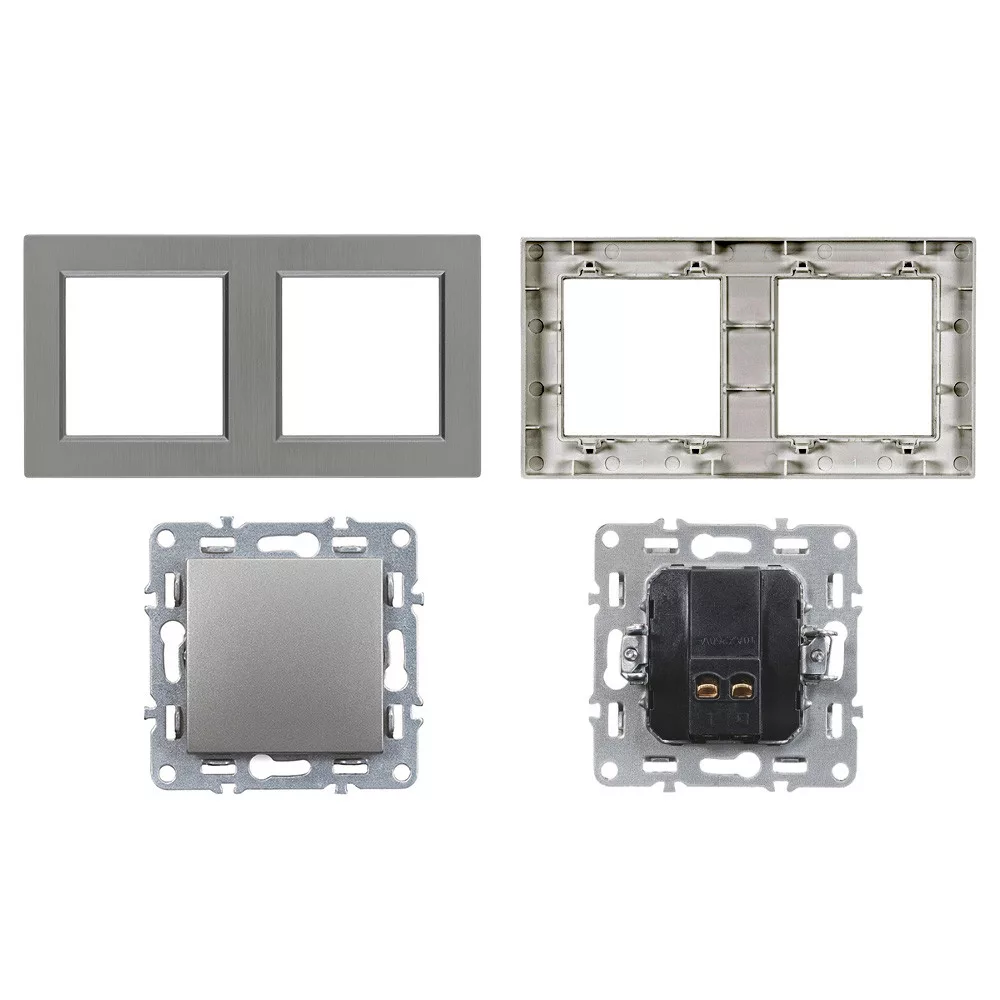 A Nova 101 típusú egypólusú kapcsoló kettős kivitelben ideális megoldás két külön világítási kör vezérlésére egy helyről. A fázisvezeték megszakításával működik, a nullavezeték érintése nélkül, így alkalmas egy- vagy többpontos világítások önálló kapcsolására. A letisztult, szürke színű kivitel tökéletesen illeszkedik modern és klasszikus enteriőrbe is.