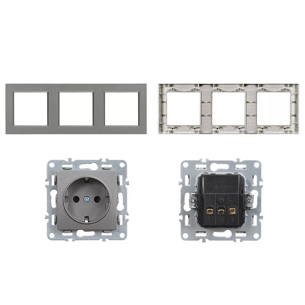 A Nova III három földelt csatlakozóaljzat 16A / 250V névleges értékekkel rendelkezik, és egyfázisú, földelt hálózati csatlakozások kialakítására szolgál a F típus (Schuko) szabvány szerint. A hármas kialakítás lehetővé teszi több háztartási vagy irodai elektromos készülék egyidejű és biztonságos csatlakoztatását, beleértve a nagyobb teljesítményű fogyasztókat is, mint például konyhai gépek, számítástechnikai eszközök vagy porszívók.A termék süllyesztett kivitelű, csavaros rögzítéssel szerelhető be szabványos méretű szerelvénydobozba. A keret nélküli modulok a mellékelt fehér hármas keretbe illeszkednek, amely modern, letisztult megjelenést biztosít. IP20-as védettsége miatt kizárólag száraz, pormentes, beltéri környezetben – például nappaliban, hálószobában vagy irodában – alkalmazható. A villamos bekötést minden esetben villanyszerelésre jogosult szakember végezze a hatályos műszaki előírások betartásával.