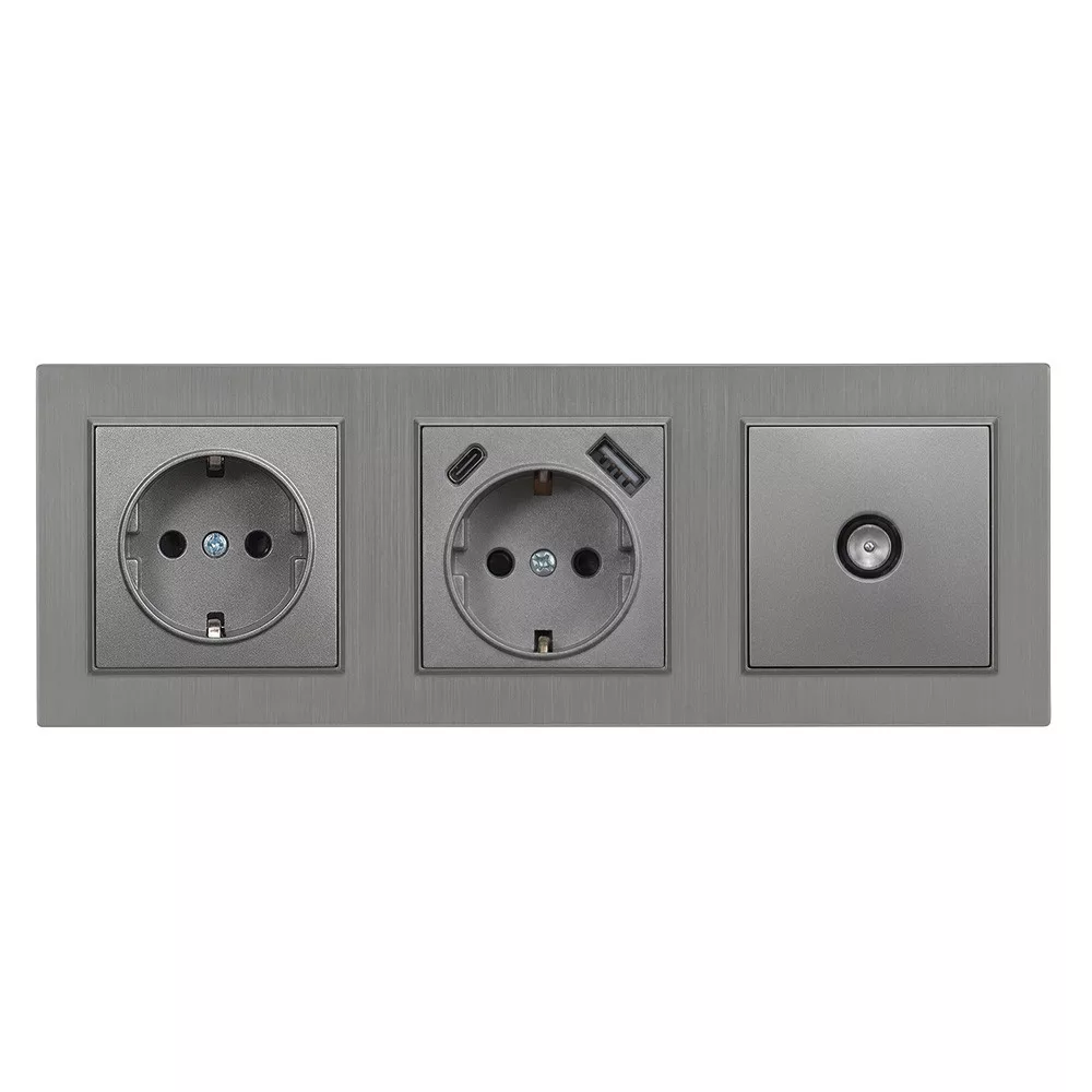Ez a Nova szett három gyakran használt funkciót egyesít egyetlen elegáns, vízszintes modulban: egy földelt konnektort, egy USB-A és USB-C kimenettel ellátott aljzatot, valamint egy koaxiális TV csatlakozót. Ideális választás nappaliba, hálószobába, dolgozószobába, ahol fontos az egyszerűség, a megbízhatóság és a rendezettség.