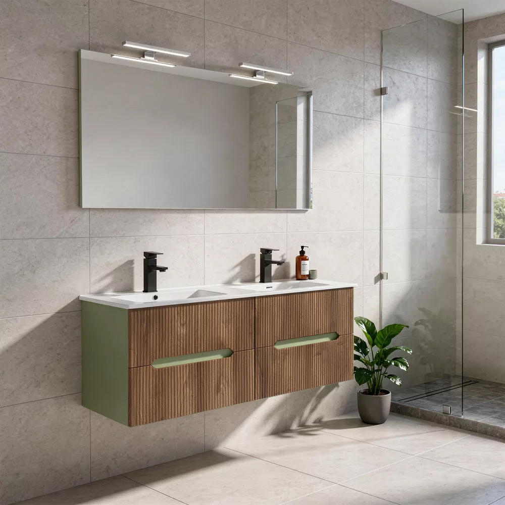 Leziter Trent Fürdőszobabútor 120 cm kerámia mosdóval (4 fiókos) tükörrel Pisztáciazöld - Sunset tölgy