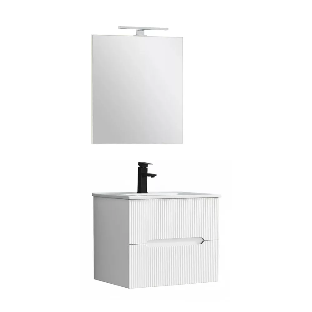 Leziter Trent Fürdőszobabútor 60 cm kerámia mosdóval (2 fiókos) tükörrel Fehér - Fehér