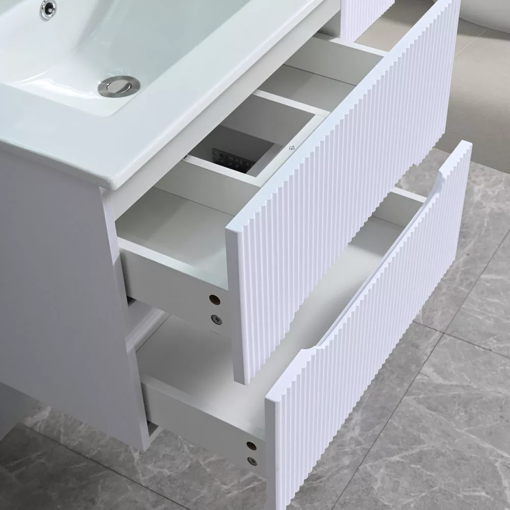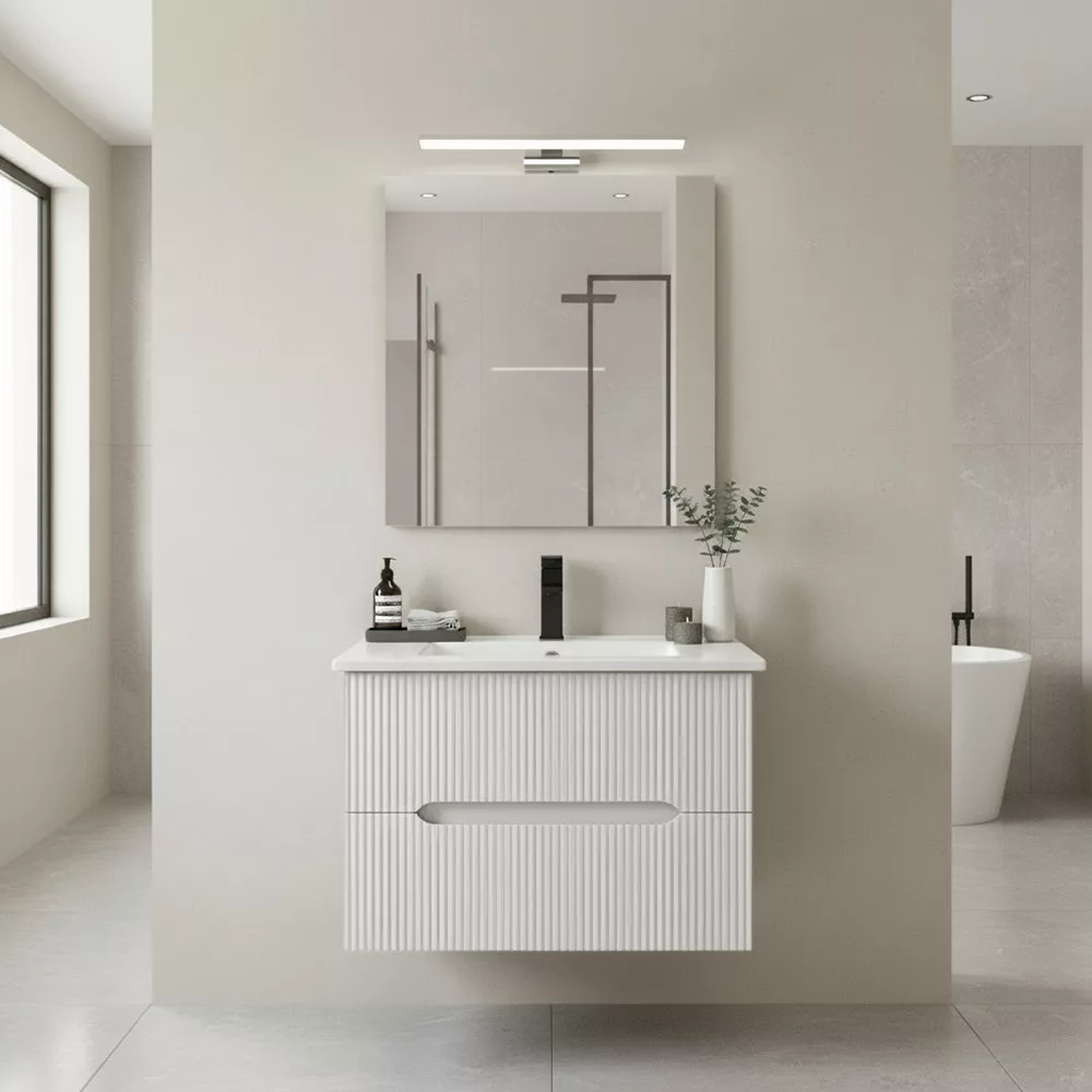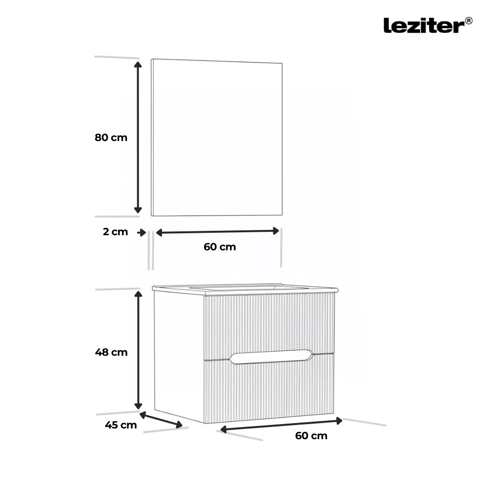 A Leziter Trent fürdőszobabútor harmonikusan ötvözi a látványt és a praktikumot. A bordázott előlap letisztult, modern karaktert ad, miközben az integrált fogantyú kényelmes használatot tesz lehetővé. A fali rögzítés könnyed megjelenést teremt, a padló takarítása pedig gyorsabbá válik.