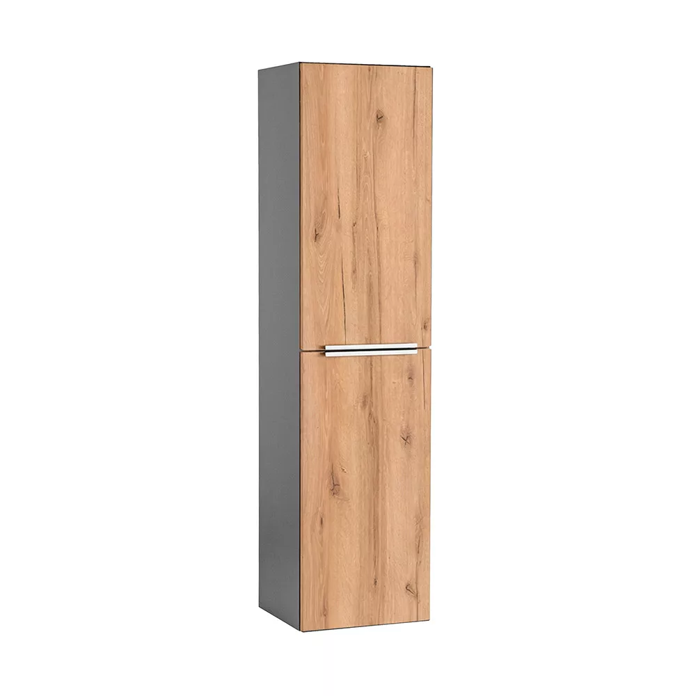 A Vario Trim 35 függesztett oldal szekrény ideális kiegészítője minden modern fürdőszobának. Remek választás, ha extra tárolóhelyre van szükség kompakt méretben a dizájnt és a minőséget is szem előtt tartva. Az antracit korpusz és tölgy front időtlen, letisztult megjelenést biztosít, amely harmonikusan illeszkedik a Vario Trim család további elemeihez.