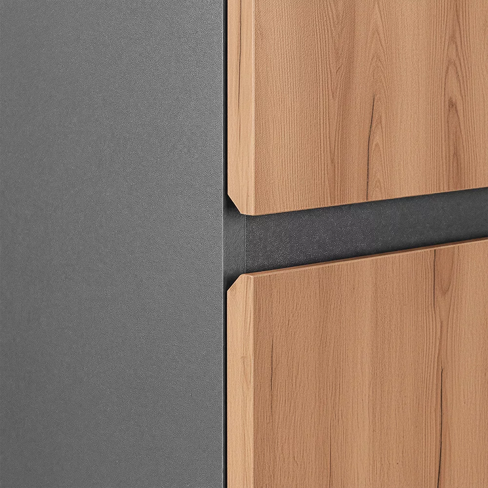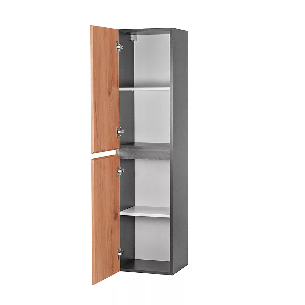 A Vario Forte 35 függesztett oldal szekrény ideális kiegészítője minden modern fürdőszobának. Remek választás, ha extra tárolóhelyre van szükség kompakt méretben a dizájnt és a minőséget is szemelőtt tartva. Az antracit korpusz és tölgy front időtlen, letisztult megjelenést biztosít, amely harmonikusan illeszkedik a Vario Forte család további elemeihez.
