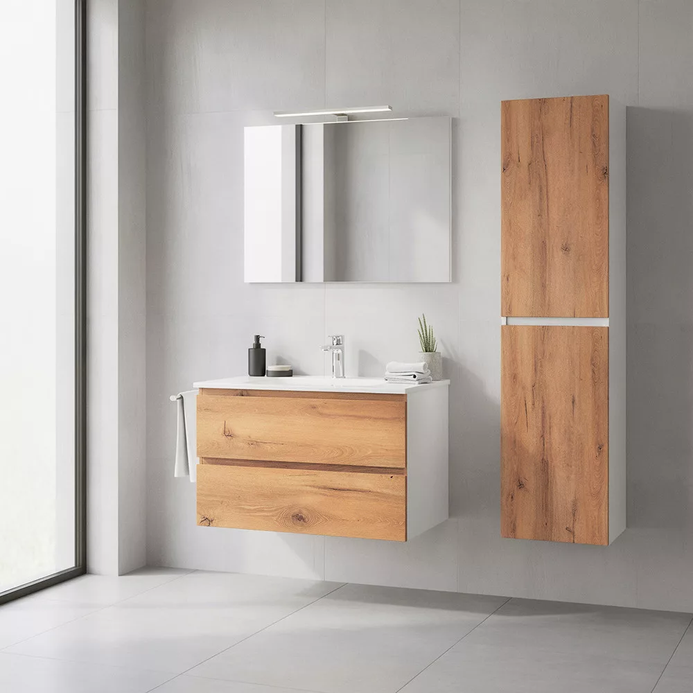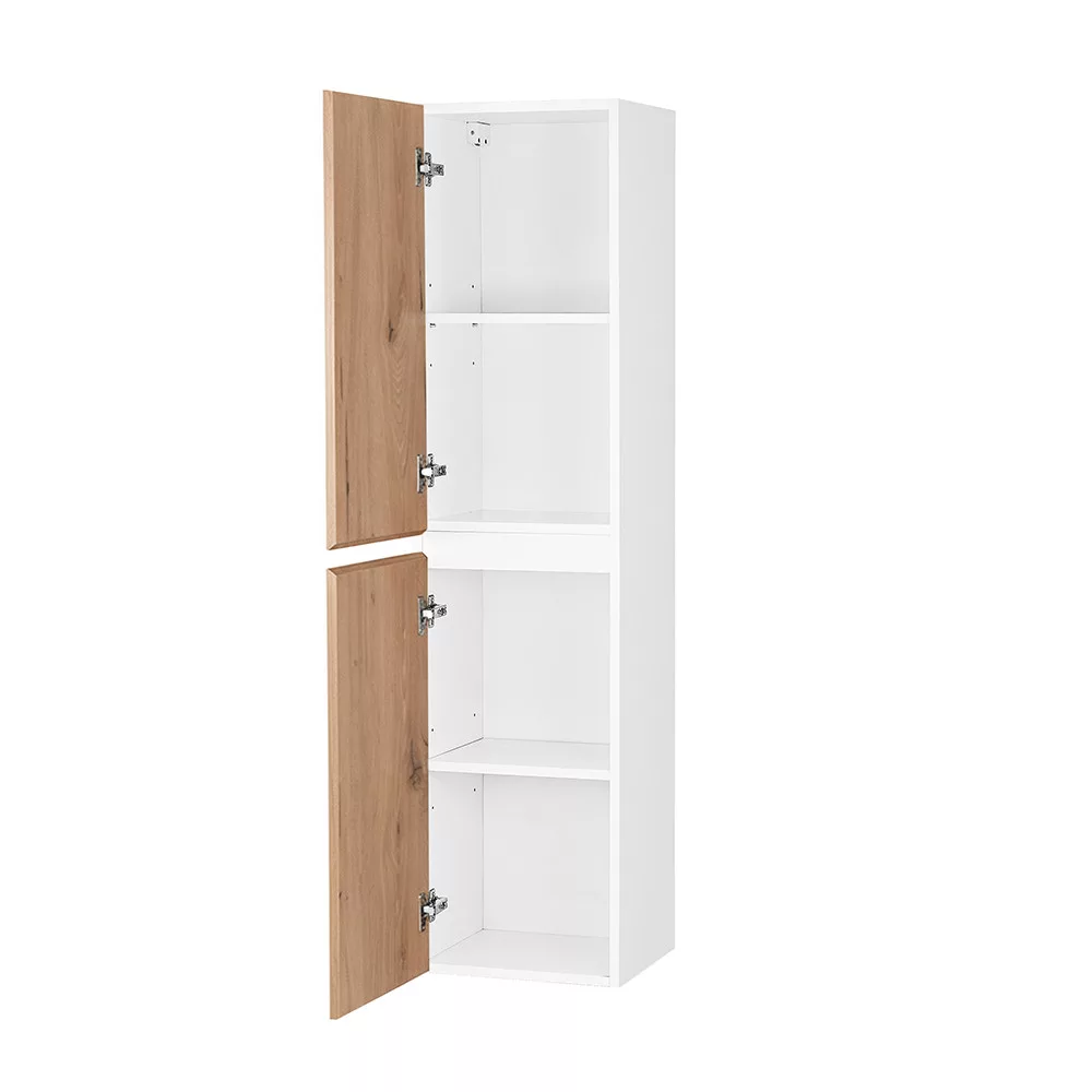 A Vario Forte 35 függesztett oldal szekrény ideális kiegészítője minden modern fürdőszobának. Remek választás, ha extra tárolóhelyre van szükség kompakt méretben a dizájnt és a minőséget is szemelőtt tartva. Az fehér korpusz és tölgy front időtlen, letisztult megjelenést biztosít, amely harmonikusan illeszkedik a Vario Forte család további elemeihez.