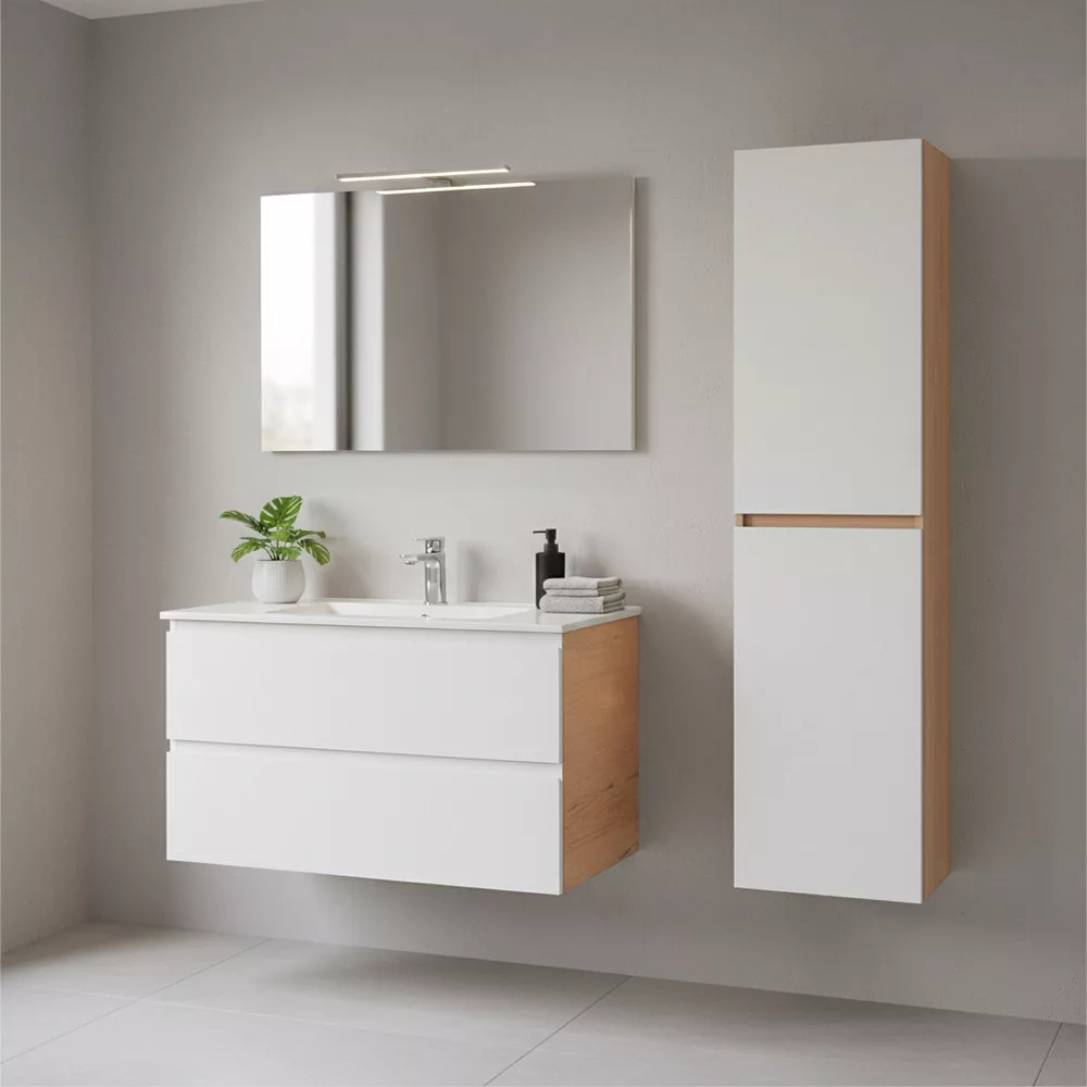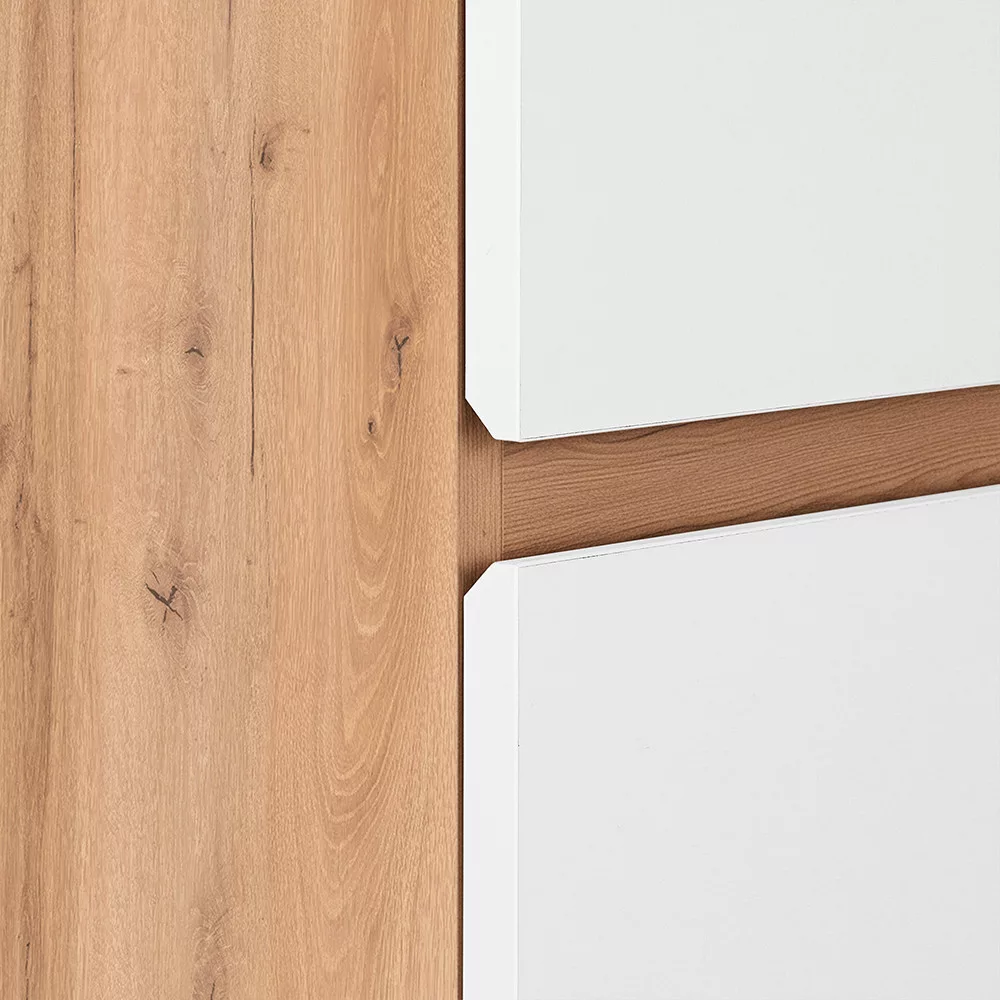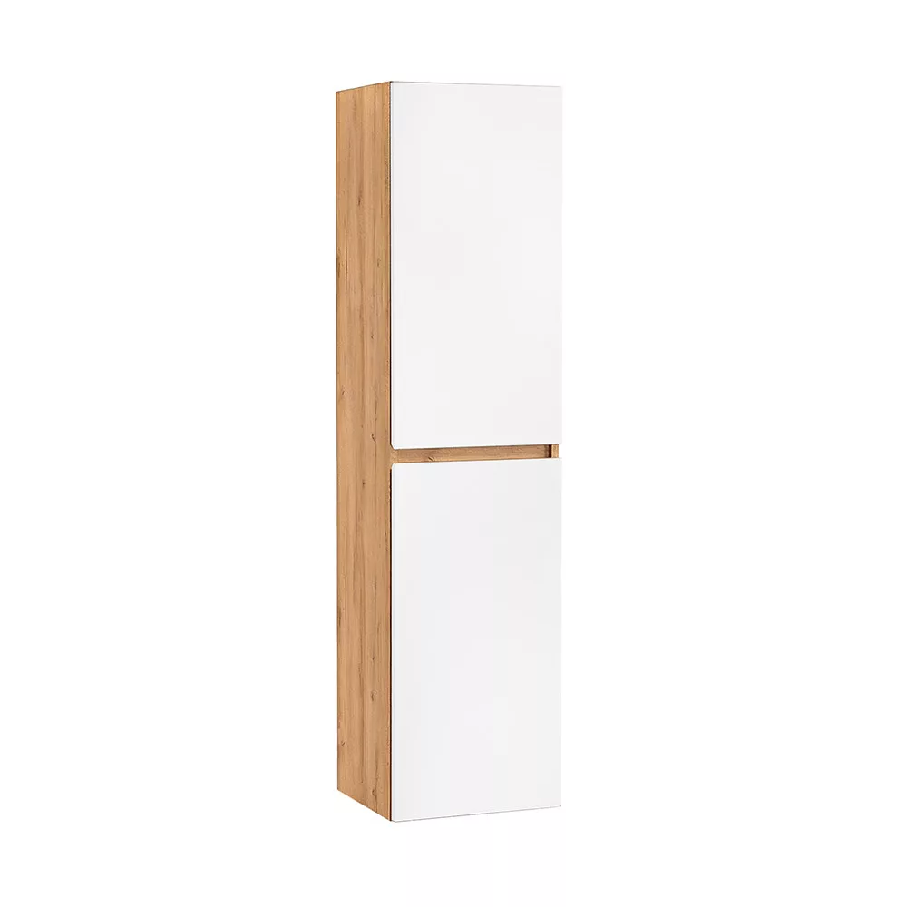 A Vario Forte 35 függesztett oldal szekrény ideális kiegészítője minden modern fürdőszobának. Remek választás, ha extra tárolóhelyre van szükség kompakt méretben a dizájnt és a minőséget is szemelőtt tartva. Az tölgy front és fehér korpusz időtlen, letisztult megjelenést biztosít, amely harmonikusan illeszkedik a Vario Forte család további elemeihez.